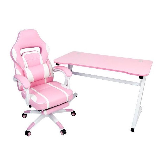 A Mesa Gamer PEL-008P Rosa tem estrutura metálica branca e tampo em MDF com revestimento rosa, que combina perfeitamente com a Cadeira Gamer Gamer PEL-3020 Rosa, que é revestida em couro PU rosa com detalhes em branco, encosto reclinável e apoio retrátil para as pernas localizado abaixo do assento que pode ser facilmente acionado; proporcionando muito mais conforto e garantindo uma ótima postura.</p>