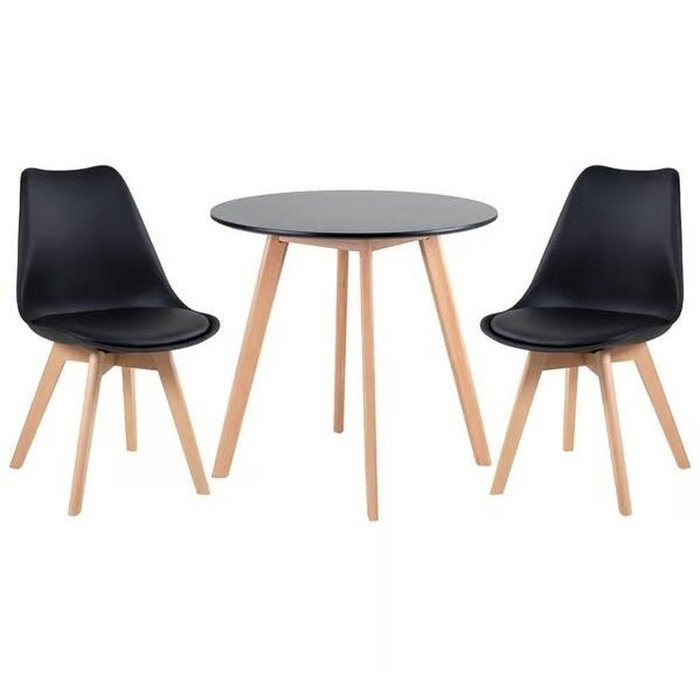 Conjunto Mesa Jantar Leda 80cm Preta + 2 Cadeiras Leda - Pretas