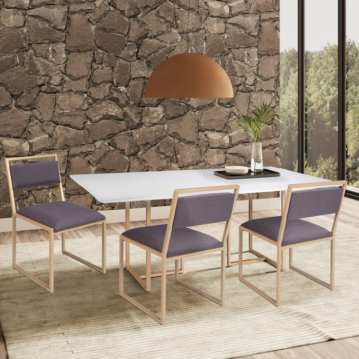 Conjunto Mesa Jantar Macapá com Cadeira Samambaia 4 Cadeiras Dourado