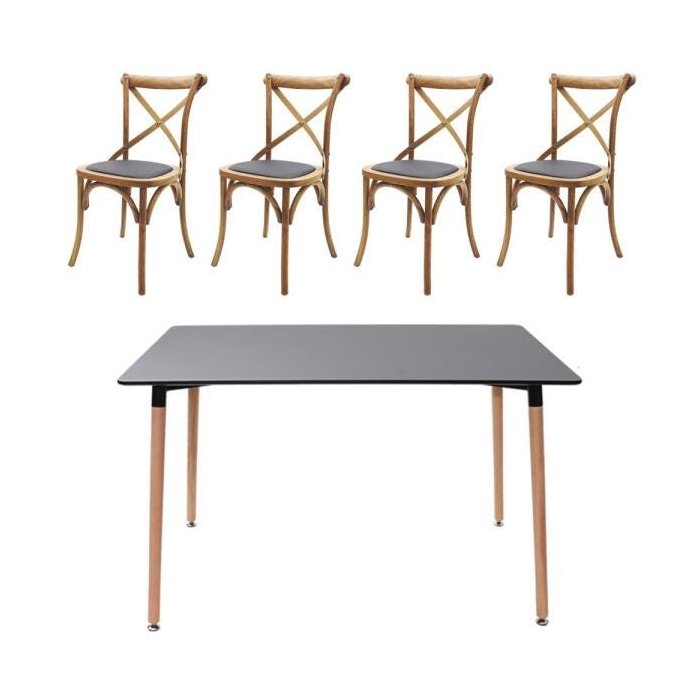Conjunto Mesa Jantar Retangular 120cm Eames Eiffel Preta e 4 Cadeiras Katrina Cross Paris Empilhá