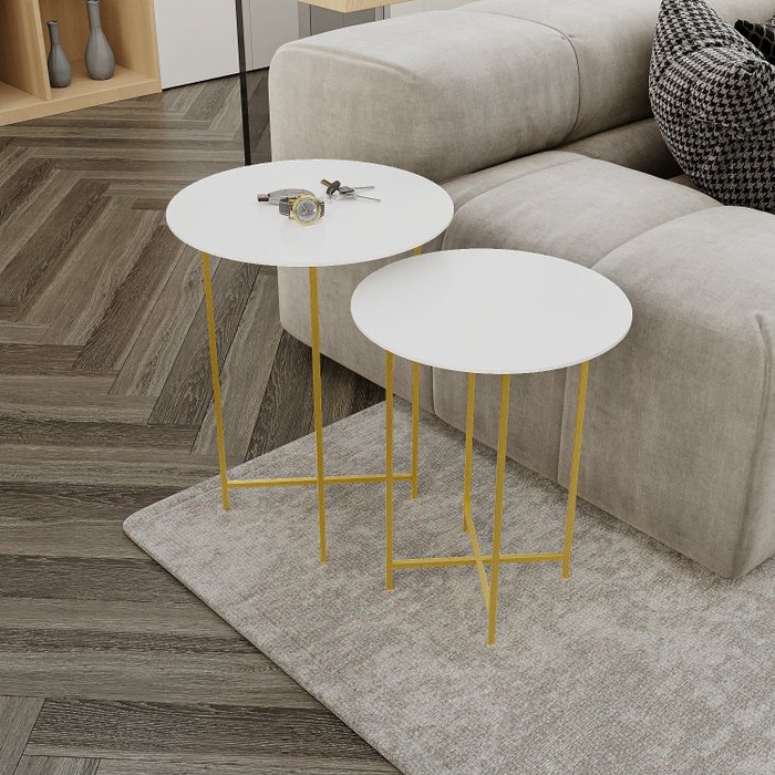 Conjunto Mesa Lateral de Canto Rome 57cm X 45cm X 45cm BRANCO / DOURADO