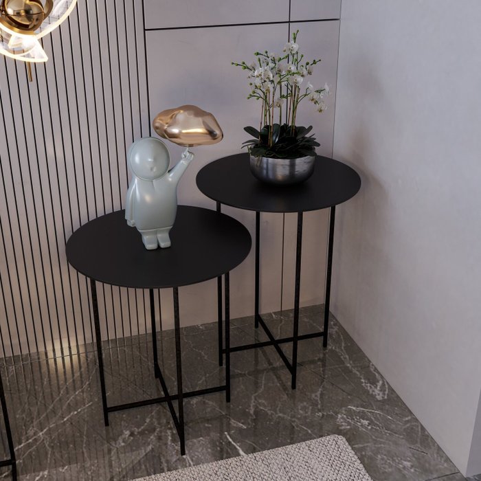 Conjunto Mesa Lateral de Canto Rome 57cm X 45cm X 45cm Preto