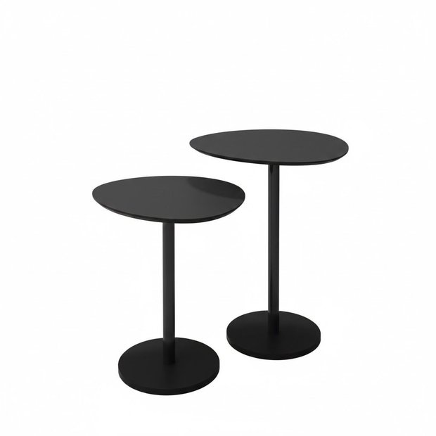 Formato: Conjunto de 2 mesas laterais, tampo retangular e base circular