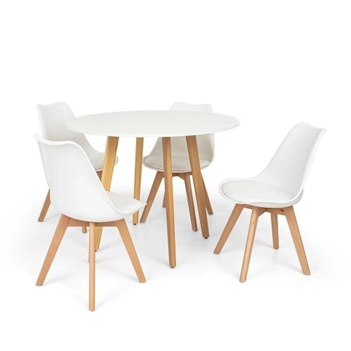 Conjunto Mesa Leda Branca 90 Cm + 4 Cadeiras Leda Brancas