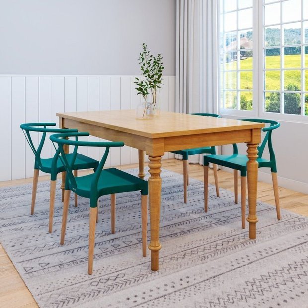 Conjunto Mesa Madeira Maciça 4 Cadeiras Wishbone Amarílis Yescasa Espresso Móveis Mel/Verde