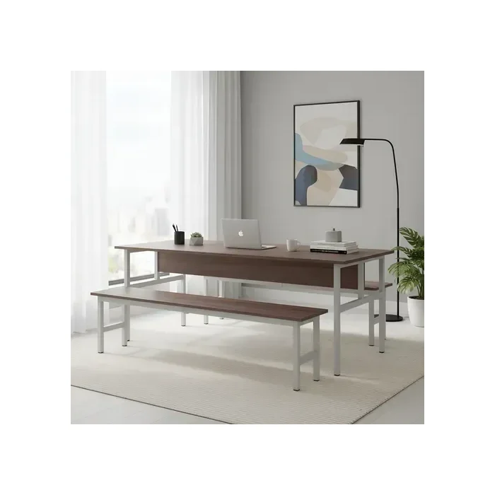 Conjunto Refeitório 8 lugares com dois bancos separados possibilitando maior flexibilidade e praticidade ao seu ambiente.