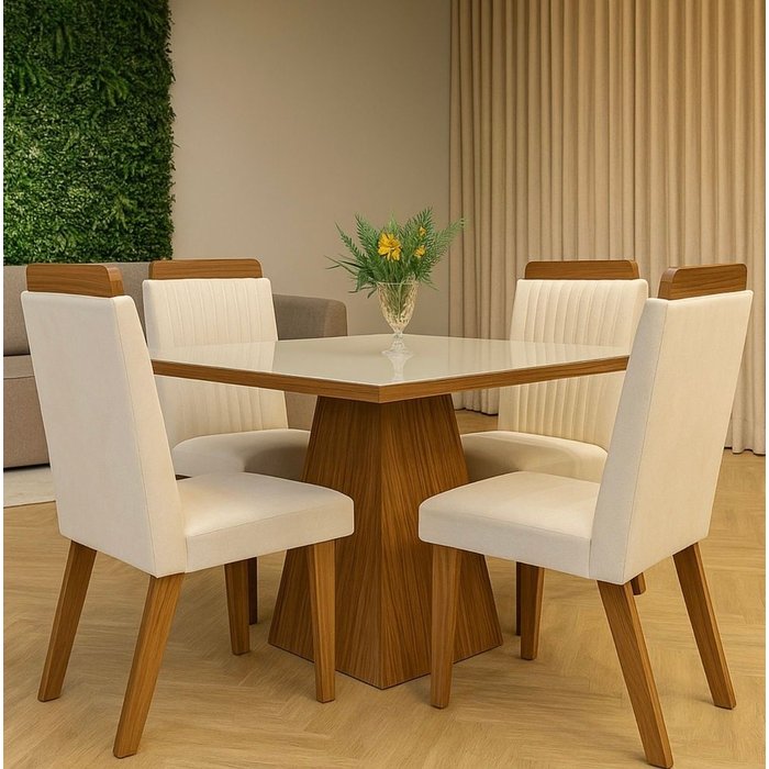 Conjunto Mesa Prada 0.90x0,090 com 4 Cadeiras Riviera Lj SUEDY CREME - TEC 164