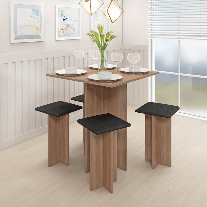 Conjunto Mesa Quadrada 67,6cm com 4 Bancos ME10 Machester/Preto