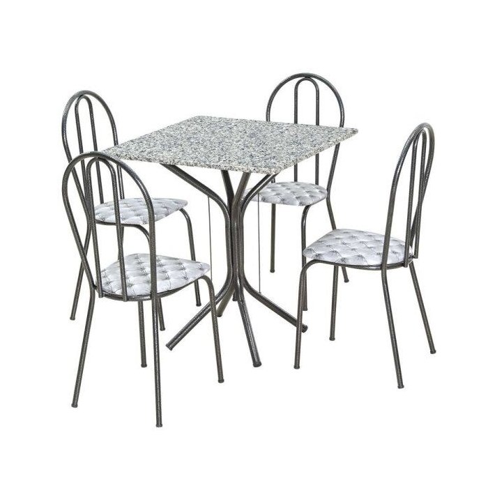 Conjunto Mesa Quadrada com Tampo em Granito e 4 Cadeiras