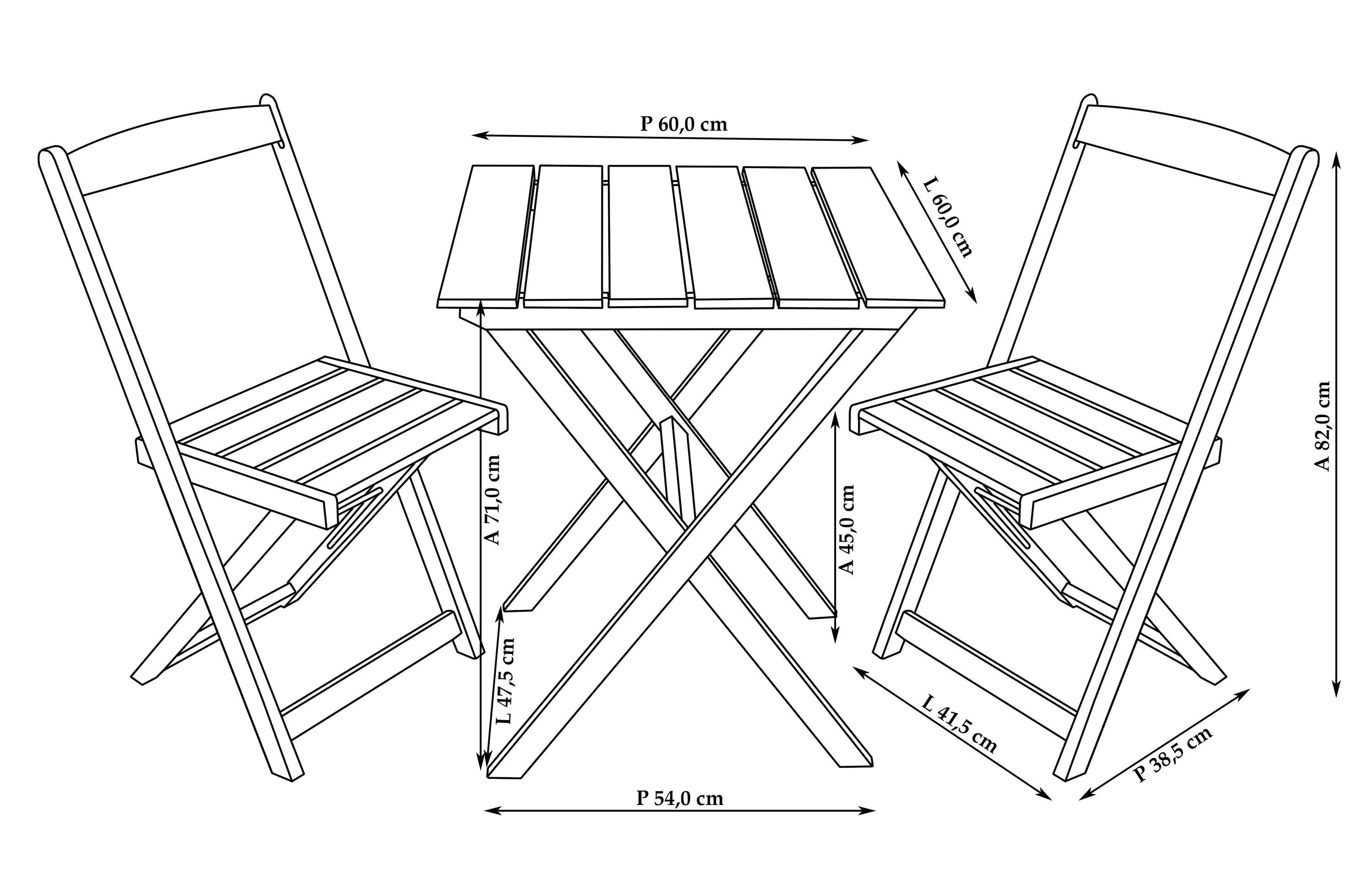 Conjunto Mesa Quadrada e 2 Cadeiras Dobráveis Orquídea Lyptus Metalnew Móveis Jatobá