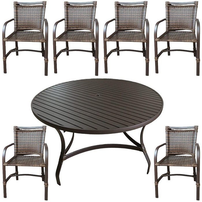 Conjunto Mesa Redonda 1,40cm Com 6 Cadeiras Betta Em Alumínio área Externa Marrom - Marrom