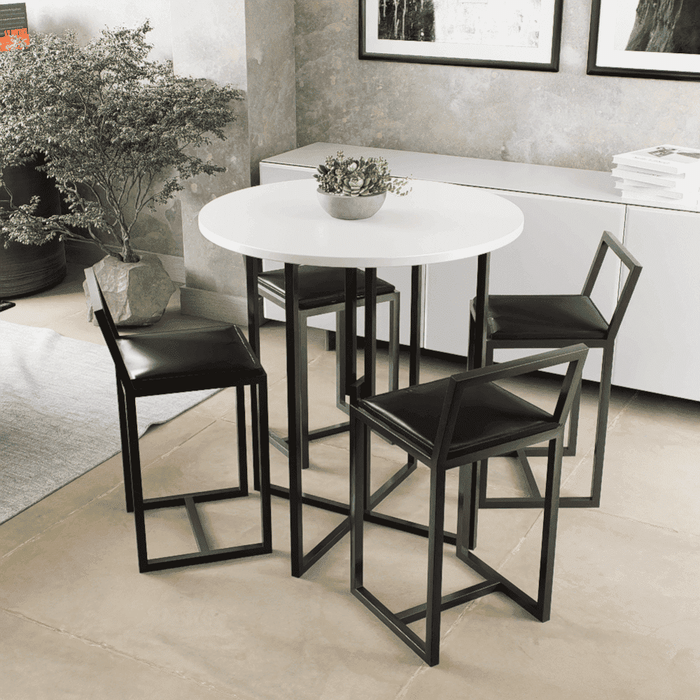Conjunto de Mesa 4 Cadeiras Pequena Estofado Tampo Branco Redondo Industrial Black