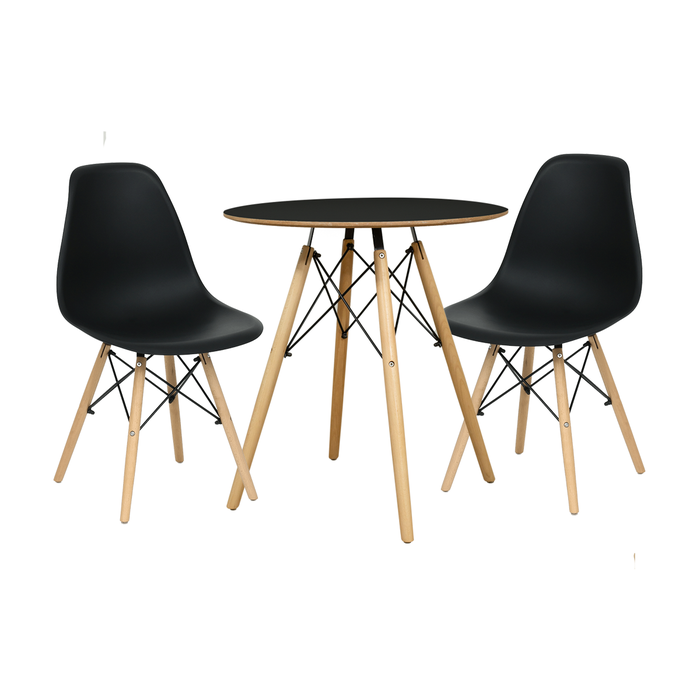 Conjunto Mesa Redonda Chanfrada Preta Eames 70cm com 2 Cadeiras Preta Eames Dsw - La Mobilia