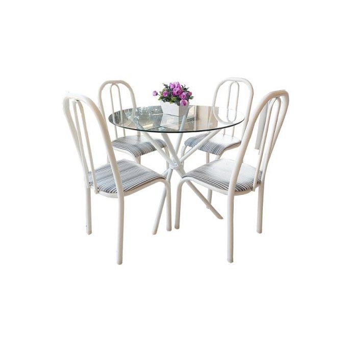 Conjunto Mesa Redonda Vidro 4 Cadeiras Branca Aço 5 Opções
