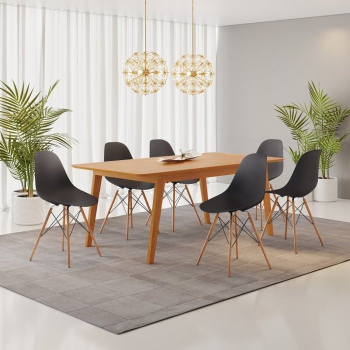 Conjunto Mesa Retangular MDF com 6 Cadeiras Eames PP Preto/Cinamomo