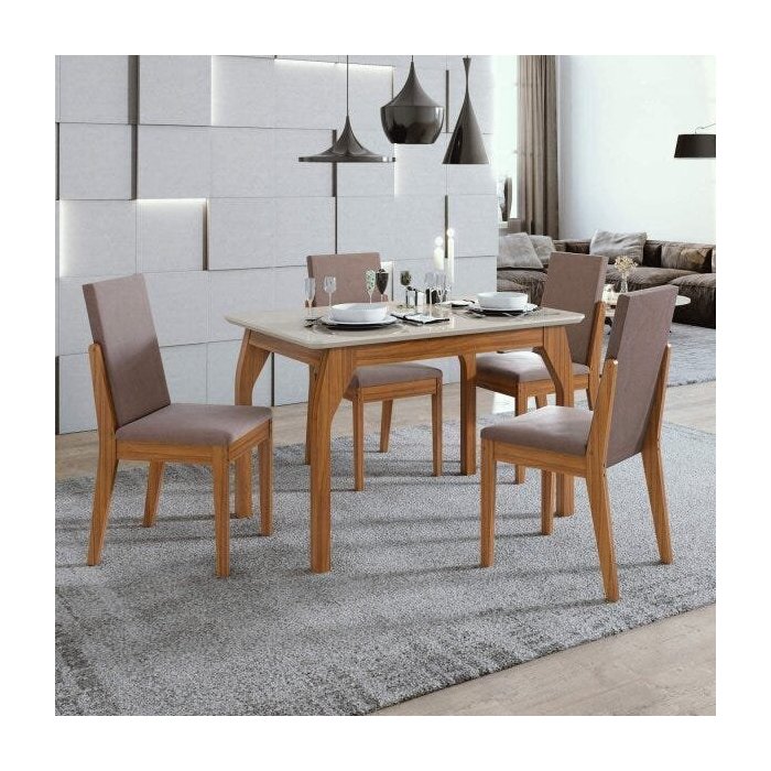Conjunto Mesa Saara 120 Tampo de Vidro 4 Cadeiras Lira Móveis Lopas neutras