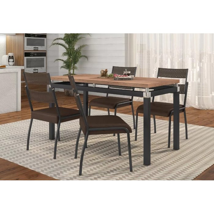 Conjunto Mesa Suzi 1,36m com 4 Cadeiras Pt Fosco Courino Fabone