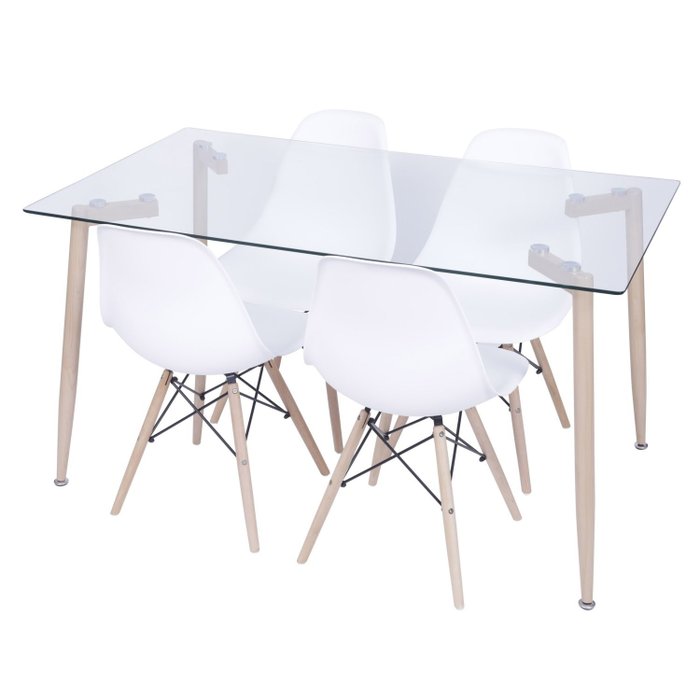 Conjunto Mesa Tampo em Vidro com 4 Cadeiras Eames DKR Branca