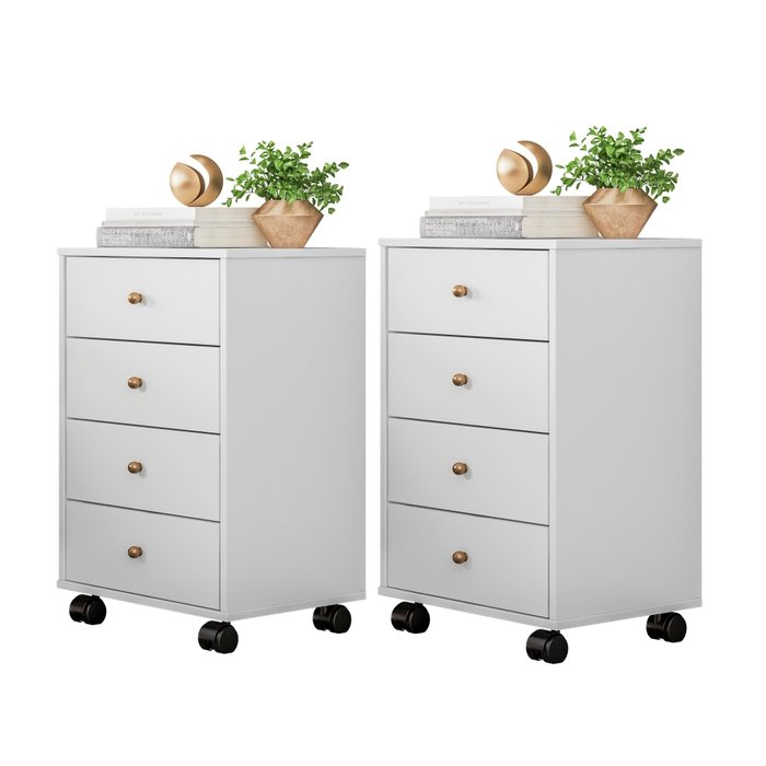 Conjunto Mesas de Cabeceira 4 Gavetas James Branco Branco