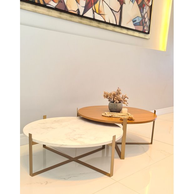 Transforme sua sala de estar com o Conjunto de Mesas de Centro Estilo Industrial Dourada da marca CASA QUENTINHA. Com um design clássico e elegante, essas mesas são feitas de aço carbono e MDF, garantindo durabilidade e um toque sofisticado ao seu ambiente. A pintura epóxi dourada proporciona um acabamento refinado, ideal para quem busca um estilo contemporâneo e ao mesmo tempo atemporal.