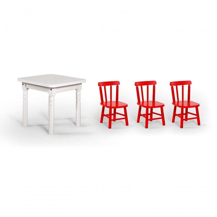 Conjunto Mesinha Infantil Branca Com 3 Cadeiras Kids Vermelho - Straub Web