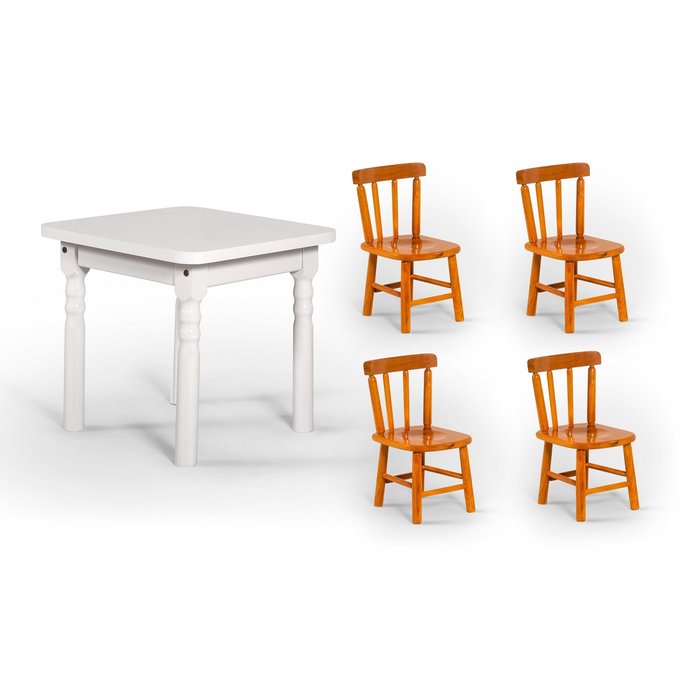 Conjunto Mesinha Infantil Branca com 4 Cadeiras Kids Natural - Straub Web