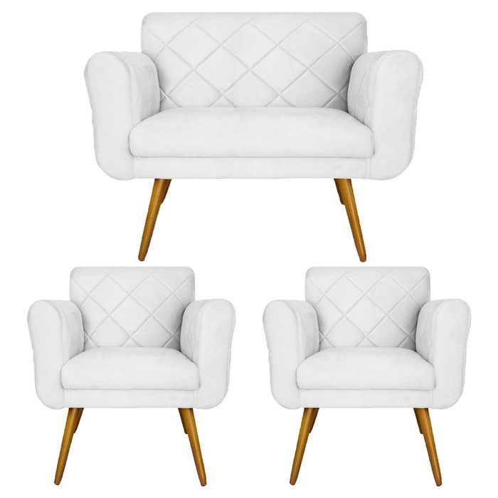 Conjunto Namoradeira e 2 Poltrona Isabella Sala de Estar Corano Branco - DL DECOR Branco