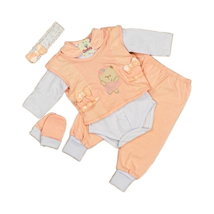 Conjunto Pagão Luxo 5 Peças Feminino Bailarina Recém Nascida - Laranja Claro