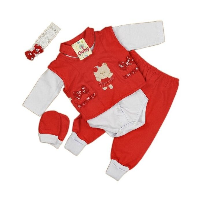 Conjunto Pagão Luxo 5 Peças Feminino Bailarina Recém Nascida - Vermelho Vermelho