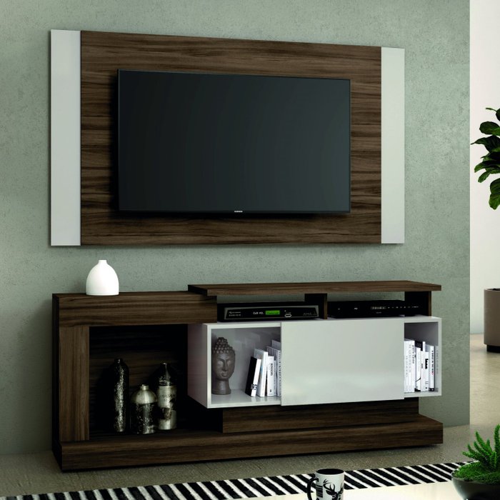 Conjunto Painel com Estante para TV até 55 Polegadas NT 1065 Notável Móveis NOGAL TREND/OFF WHITE
