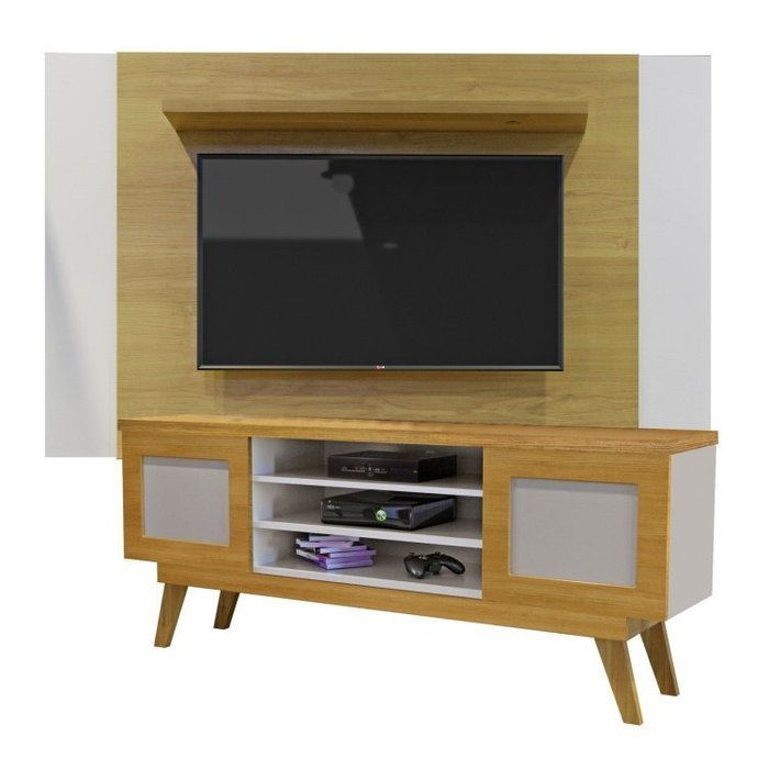 Conjunto Painel para Tv até 50 Polegadas Extensível América e Rack 2 Portas Detroit Cinamomo/Off White