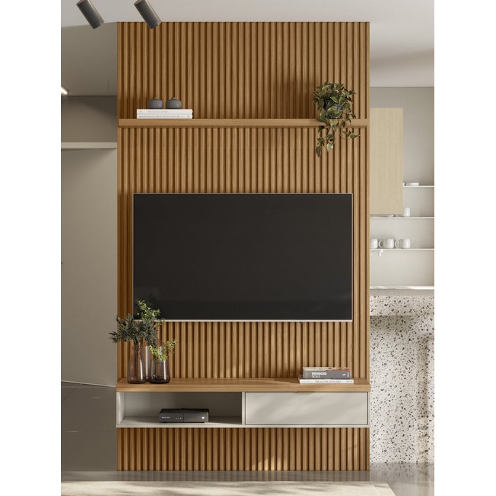 Conjunto Painel Ripado 1.4 c/ Nicho e Prateleira p/ TV até 60'' - Linea