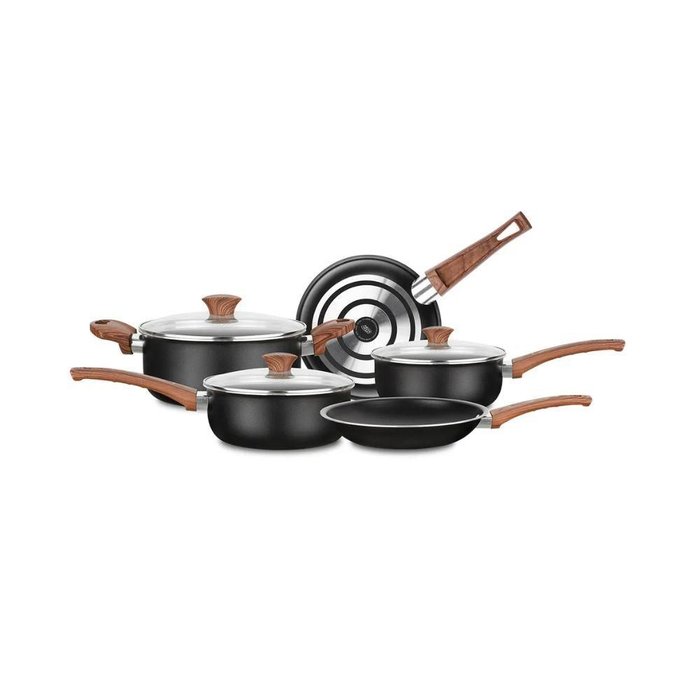 O Conjunto de Panelas Antiaderente Ceramic MTA 5 Peças une praticidade e sofisticação para a sua cozinha! Feito em alumínio com revestimento cerâmico, possui cabos e alças soft touch em tom amadeirado e tampas de vidro temperado com saída de vapor. Com espessura de 2mm, garante cozimento rápido e uniforme. Compatível com fogões a gás, elétrico e vitrocerâmico. Ideal para preparar suas receitas com eficiência e estilo!