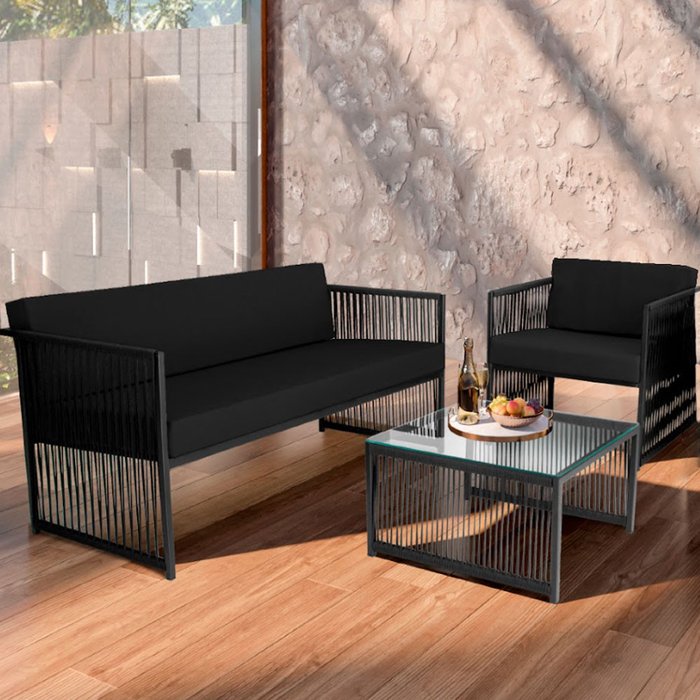 Conjunto para Área Externa de Corda Náutica - Poltrona Namoradeira Mesa de Centro Santiago Preto/Preto