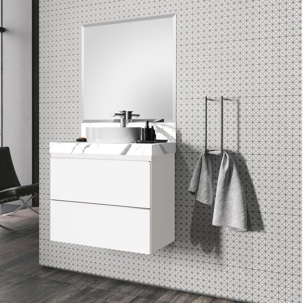 Gabinete fabricado em MDF e MDP BP (15mm), com puxadores em alumínio anodizado, possui caixaria estruturada com cantoneiras metálicas, gavetas com corrediças telescópicas proporcionando abertura total, possui gavetacom higiênico organizador dental (removível e lavável). Possui também, uma gaveta interna com divisores e manta anti-derrapante protegendo fundo da mesma. Espelho Cristal 03 mm com acabamento bisotê, estruturado em painel de MDF. Lavatório para Banheiro é fabricado em porcelanato técnico polido, mais frontão frontal e frontão lateral. Ideal para compor com os Gabinetes Blu 80 da marca Bumi Móveis. * Não acompanha Cuba, Torneira e Acessórios.