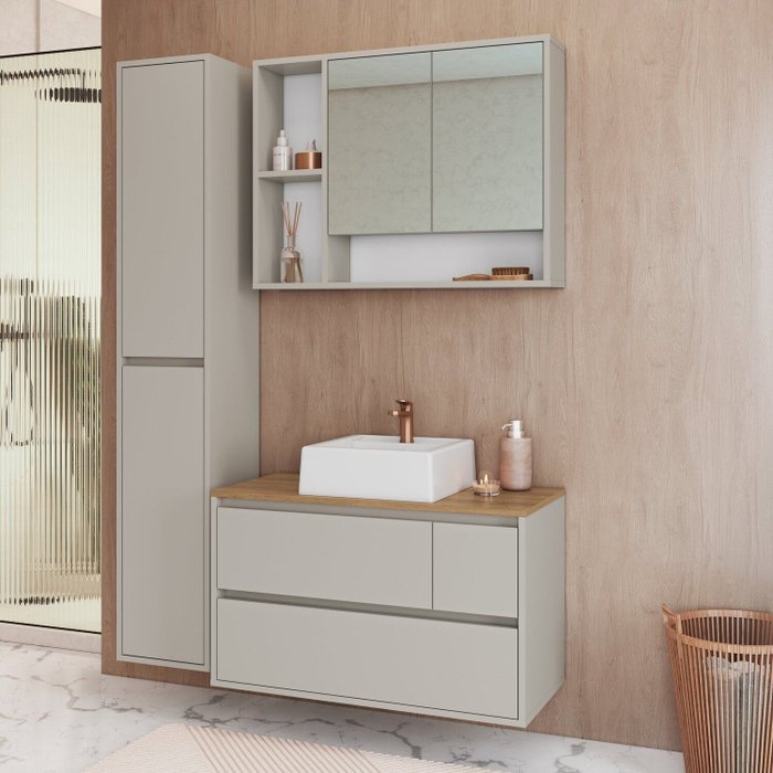 Conjunto para Banheiro 108cm com 3 Peças Gabinete Suspenso com Cuba Belarus