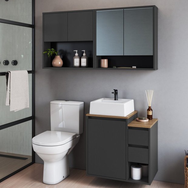 Conjunto para Banheiro 120cm com 3 Peças Gabinete Suspenso com Cuba Bahamas Grafite