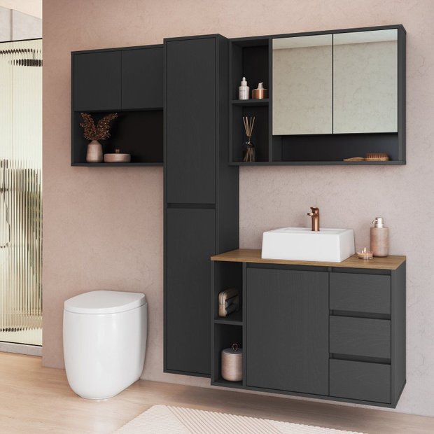 Conjunto para Banheiro 168cm com 4 Peças Gabinete Suspenso com Cuba Belagavi Grafite