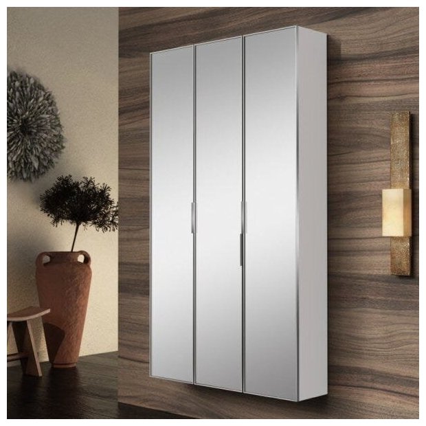 Conjunto para Banheiro Blu com 3 Armários Verticais Brancos com Portas Espelhada Branco