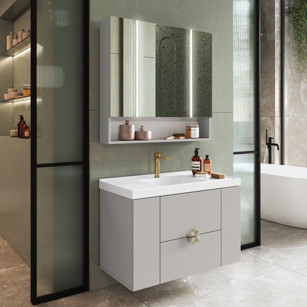 O requinte do Conjunto de Banheiro CJ8070 Yescasa traz para você renovação com modernidade e elegância para o seu banheiro. Esse lindo gabinete com 2 gavetas centrais sustentadas por corrediças telescópicas que trazem uma abertura com deslize suave e as portas laterais com abertura fecho toque sustentam a modernidade deste banheiro.