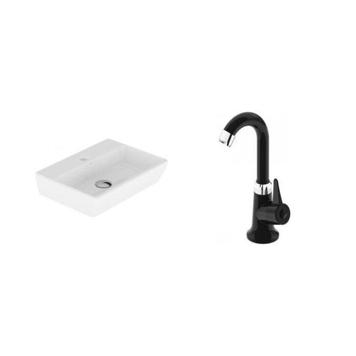 Conjunto para Banheiro Cuba de Apoio Novara 11,5cmx47cmx35cm e Torneira Bica Móvel ABS 1/4 Japi Branco/Preto