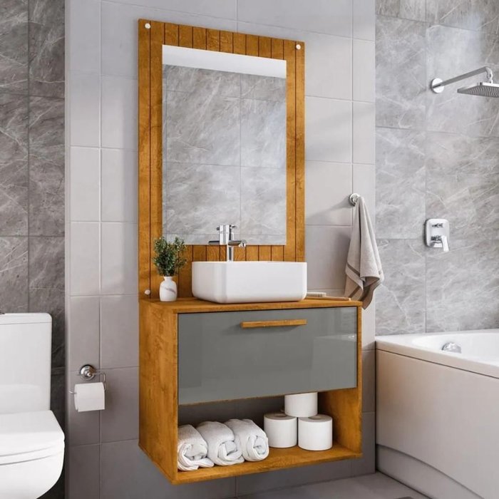 O Conjunto de Banheiro é perfeito para dar um toque de sofisticação ao seu ambiente. 1 Porta com Dobradiças Metálicas para maior resistência e fácil acesso.