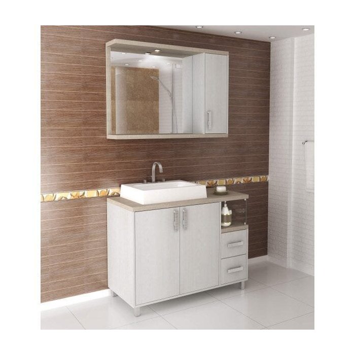 Conjunto para Banheiro Gabinete 2 Gavetas 2 Portas com Cuba e Espelheira com LED Dallas Balcony