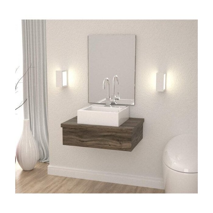 Conjunto para Banheiro Gabinete 60cm Cuba Q35 e Espelheira 601W Metrópole Carvalho Dark