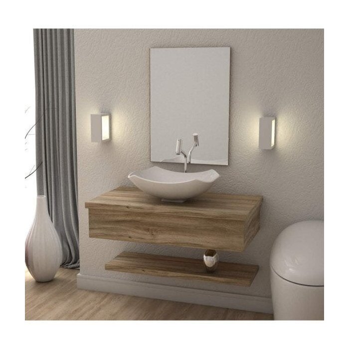 Conjunto para Banheiro Gabinete 80cm Cuba Abaulada L42 Prateleira e Espelheira 806W Metrópole Compac Carvalho