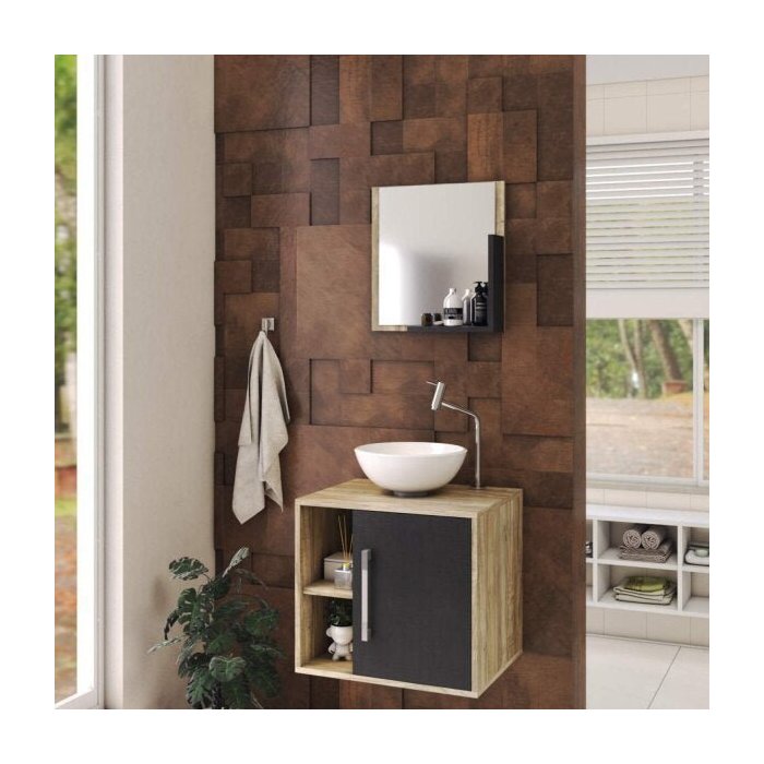 Conjunto para Banheiro Gabinete com Cuba Redonda R30 e Espelheira Soft 500W Carvalho
