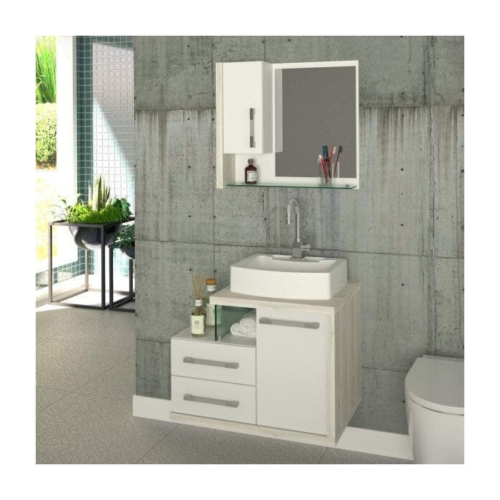 Conjunto para Banheiro Gabinete com Cuba Rt41 e Espelheira Legno 650W