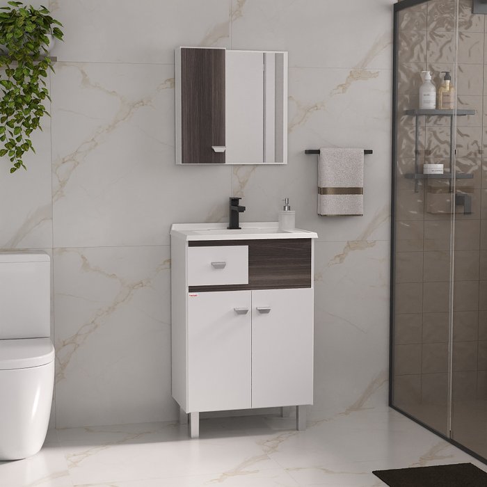 Conjunto para Banheiro Pop com Pés - Fabribam Gabinetes Branco/amêndoa -