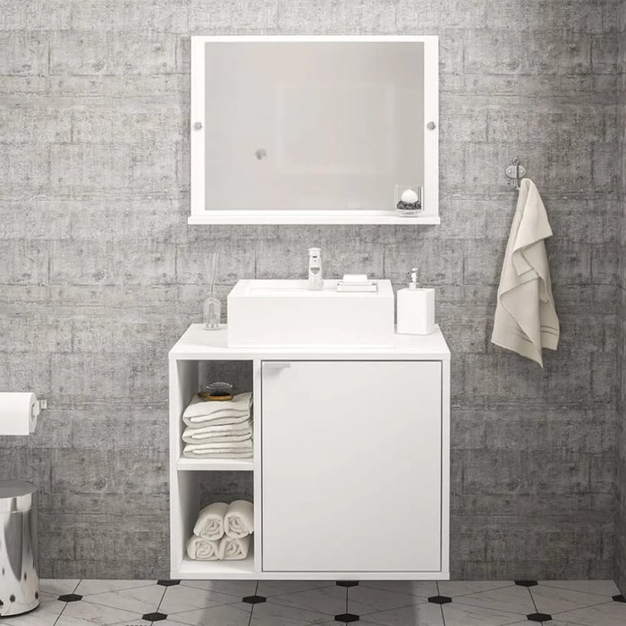 Conjunto para Banheiro Suzano com Espelho e 1 Porta - Branco Branco