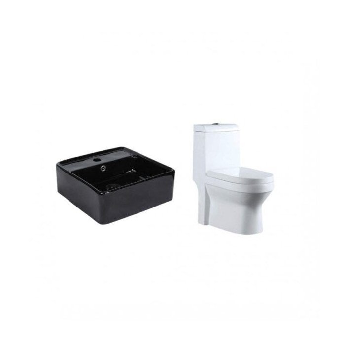 Conjunto para Banheiro Vaso Sanitário com Caixa Acoplada Monobloco e Cuba de Apoio Quadrada Adamas branca